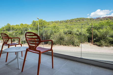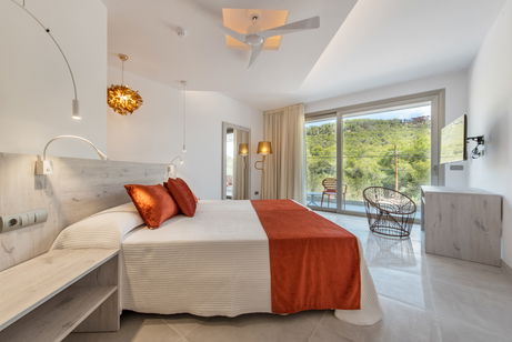 The room has mountain views, air conditioning, private balcony or terrace, TV and a complete bathroom with shower and bathtub.